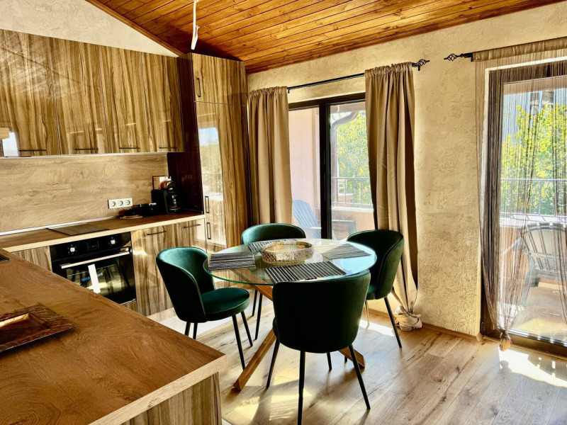 Къщата е с положени настилки от естествен камък и естествен паркет, мазилки травертин.