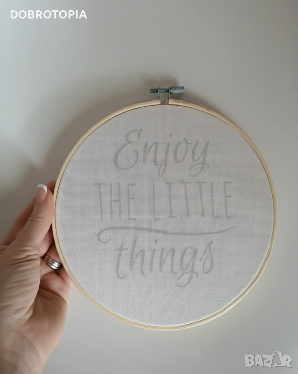 Със своя компактен размер, тези очарователни текстилни принтове в дървени обръчи могат да се вместят във всеки кът, напомняйки за най-важното в живота - да се радваме на "малките" неща и на присъствието на любимите си хора.