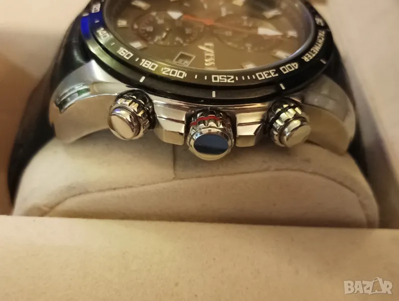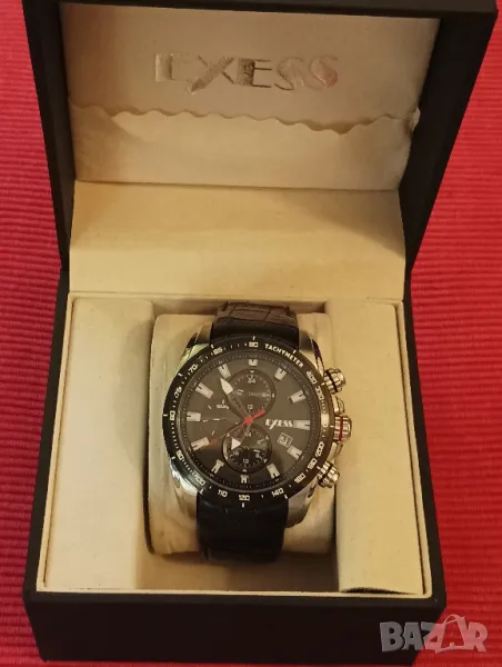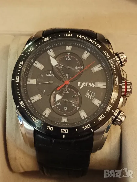Мъжки часовник EXESS с оригиналната си кутия, кожена каишка.Часовника е носен два пъти, леки следи по каишката. Отлично състояние, няма забележки. Еконт, Спиди, лично предаване.