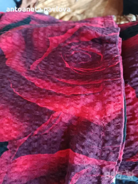 Дебело зимно шалте ,което е използвано два пъти .Към него има долен чаршаф с две калъфки които са нови.Материятя е креп .Комплектът е стоял в найлонова торба.
