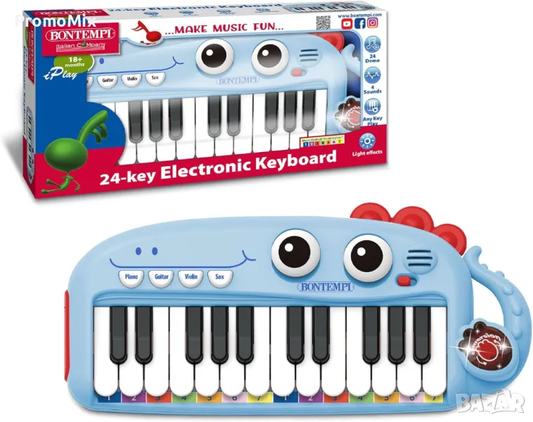 Музикалната играчка разполага с 24 демо песни, 4 режима на мелодия, като пиано, китара, цигулка или саксофон.
