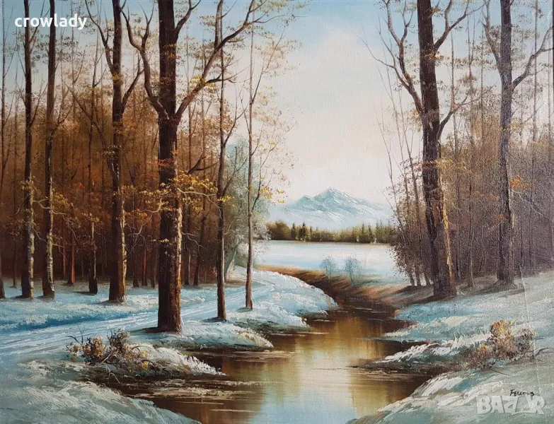 Красива картина Зимен пейзаж от Fellows с маслени бои → Обява 47546822