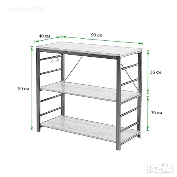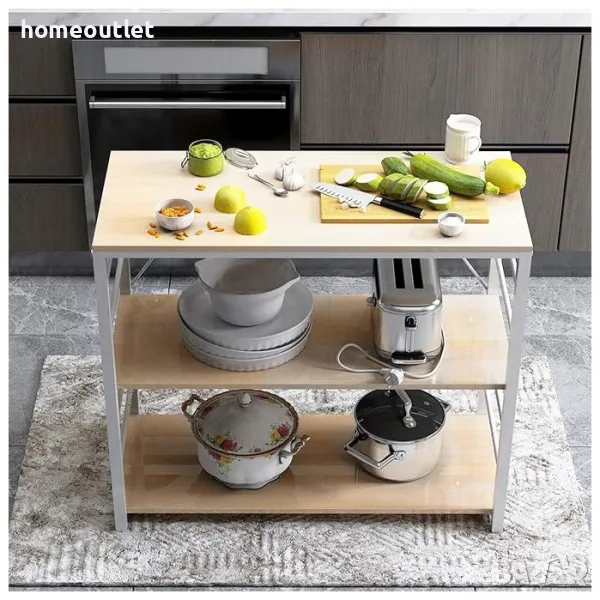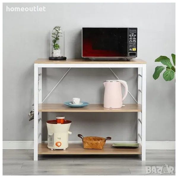 Рафтовете за съхранение на 3 нива осигуряват достатъчно място за съхранение, което може да побере микровълнова фурна, подправки, съдове, тостери или други кухненски принадлежности и домакински уреди.