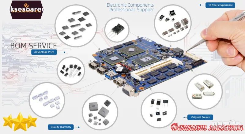 (2 по 100 вата на готови интегрални схеми, 1 по 500 вата),