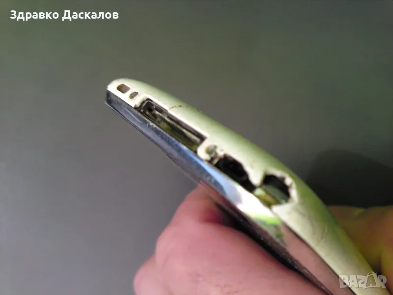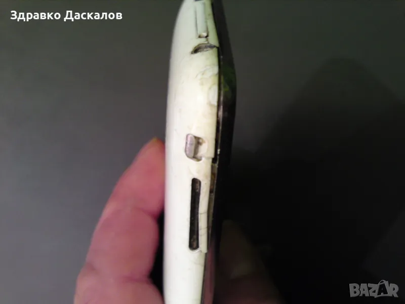 Телефонът работи,има следи от употреба,отчупено парченце отстрани на белия пластмасов капак и липсващи бутони за звука.Липсва сим държача.