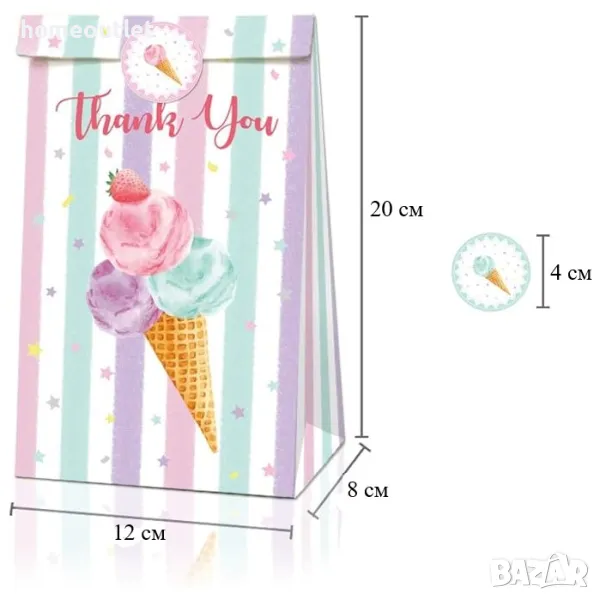 12 парти торбички с мотив сладоледи, с които могат да се опаковат мини подаръци за деца по всяко време.