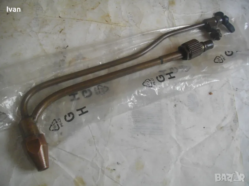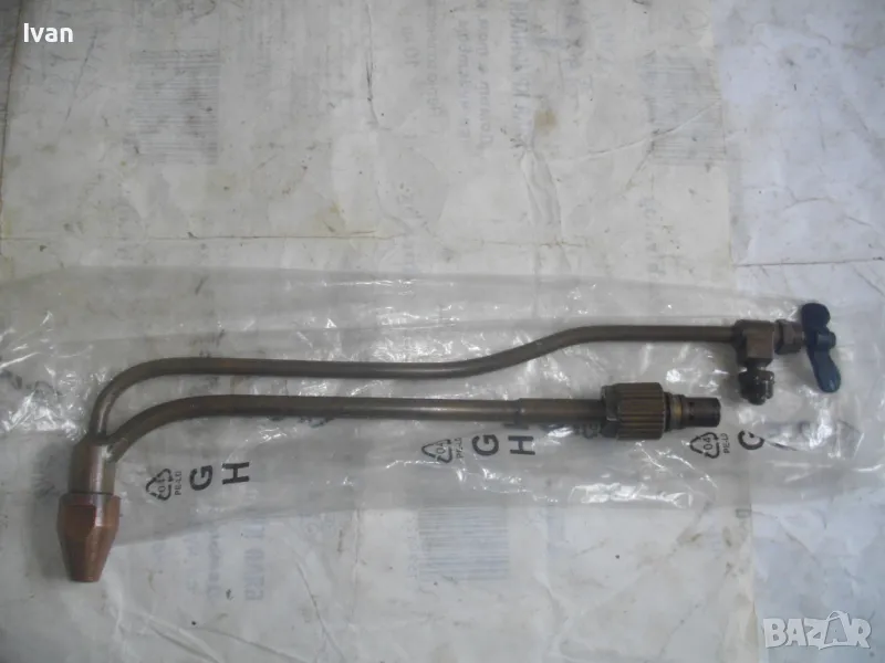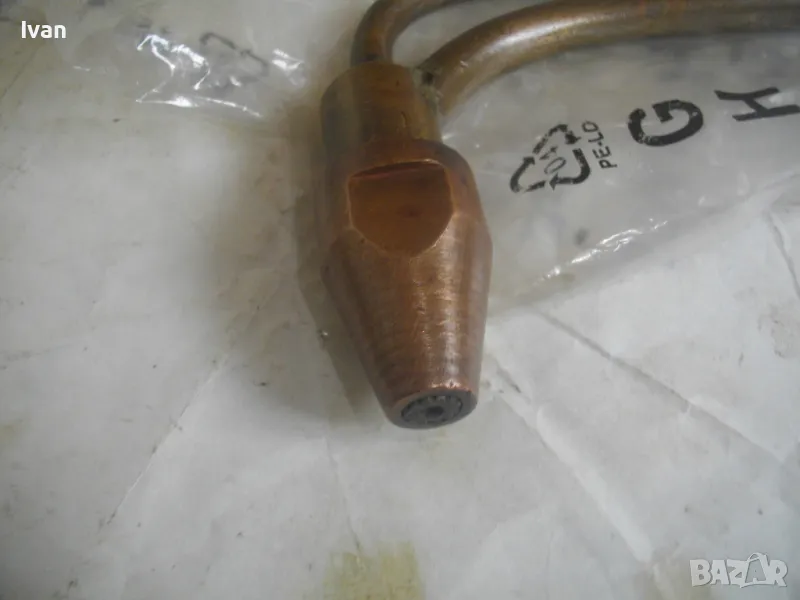 Резак КРАКРА български пернишки двутръбен без дръжка бренер - оригинален. Нов, неизползван и неупотреяван. Дължина 375 мм, бронзов, двутръбен, с крилчата стоманена врътка отзад за кислорода. Гайка налична оригинална за захват към държка бренер КРАКРА. Медна глава с медна дюза и поставена оригинална дюза за резака бронзова. Тегло - 0,8 кг.
