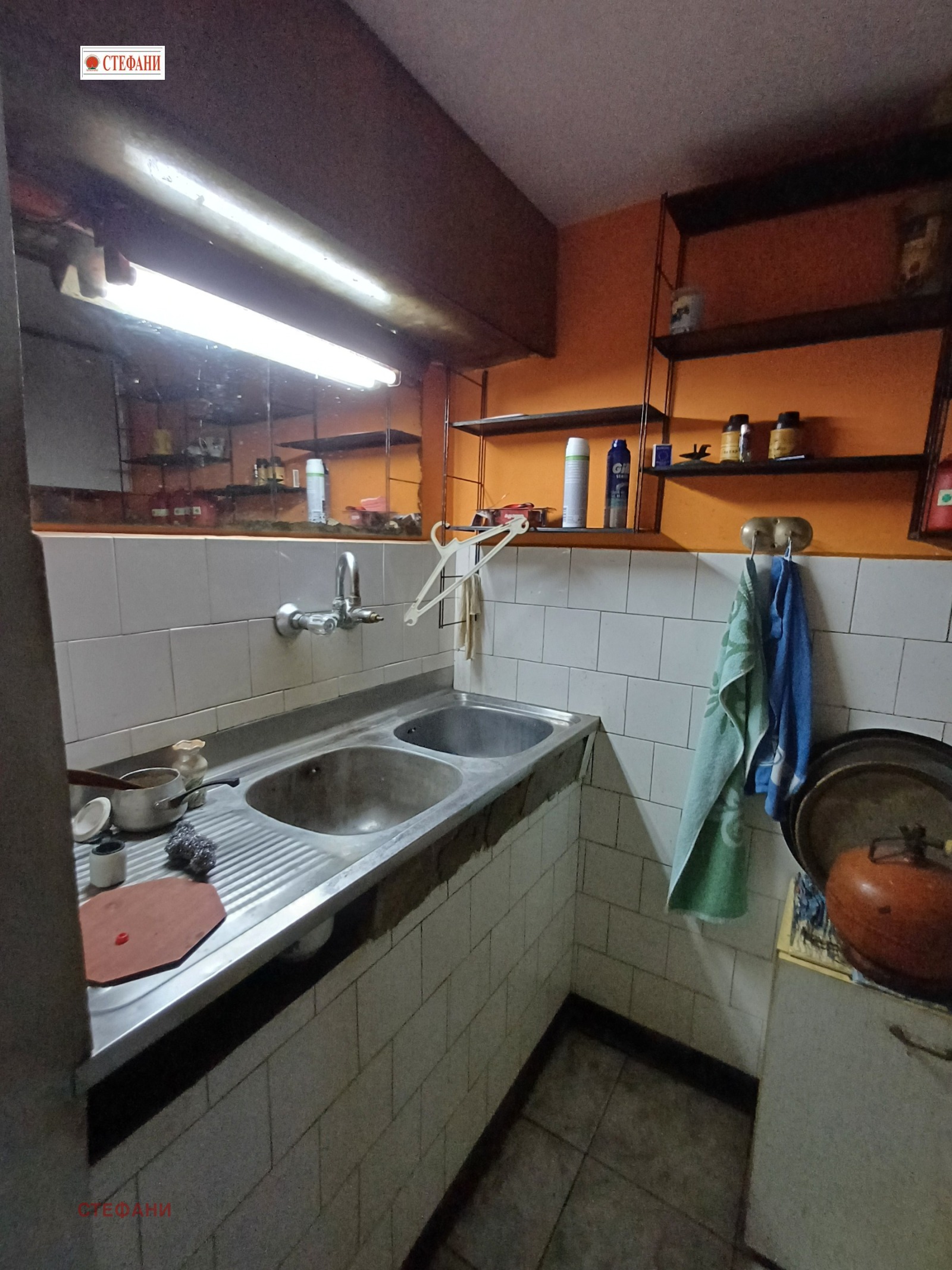 Етажът е с площ от 100 кв.м. и се състои от голям коридор, две спални,едната с тераса,и още една по малка, кухня и хол с тераса,килер,ПВЦ навсякъде,ламинат,теракот;бечов етаж с механа,стая с кухненски бокс,коридор,ниша,баня и тоалетна отделно.Има и локално парно на твърдо гориво. Към имота има гараж 20 кв.м. и 210 кв. м. двор с оранжерия,работилница и четири складови помещения.