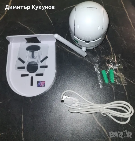 Здравейте откриватели на добри оферти! Попаднали сте на една страхотна обява. Камерата е използвана за 1 час/ Чисто нова! Има и два подаръка към обявата/ 1. Подарък стойка за стена без дупчене в стената!!! 2. Подарък SD карта запис 512MG !!WiFi IP Камера Въртяща се 360° Full HD с Нощно Виждане и двупосочен звук.Резолюция: Full HD 720p 2 Мегапиксела – запис със звукЗахранване: Чрез захранващ адаптер (включен в комплекта)Свързване: Чрез WiFi и Приложение за Телефон, сваля се от Android store или App Store. Съвместим с всички android и apple устройства.Внимание! В комплекта е включена SD карта за запис. Подарък!!! 512 MG + Подарък!! Стойка за стена без дупчене в стената. - 360 градуса въртене от телефона!- Сензор за движение;- Следене на подвижен обект;- Инфрачервено нощно виждане;- Телефонни известия – push notifications;бебефон или уоки-токи;- Възможност за прикрепване към стена.Тип: IP КамераМатериал: Висококачествен ABSЗапис: На карта памет до 32GB или Облачно съхранениеНощно време обхват: 10 метраСъвместимост: Android, iOS и Windows приложенияРазмер: 8.5 х 11 х 6.5 см