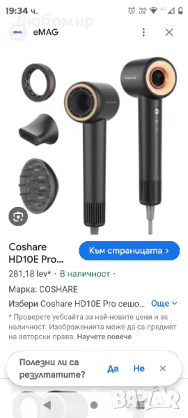 Сешоарът Coshare HD10E Pro е незаменим инструмент за ежедневна грижа за косата. Моторът със 110 000 оборота в минута, комбиниран с 1600 вата мощност, ви позволява да изсушите косата си за секунди. Предлага 3 скорости на издухване и 4 температурни настройки. Благодарение на използването на йонизираща технология косата ви ще бъде гладка, блестяща и приятна на допир. Освен това впечатлява с изключително малък обем, леко тегло и компактен дизайн.Сега отнема много по-малко време, за да се подготвите! Ефективното сушене се осигурява от безчетков мотор, който работи с до 110 000 оборота в минута и осигурява силен и равномерен въздушен поток от 70 m/s. В резултат на това изсушаването на дълга коса отнема по-малко от 3 минути, докато късата коса е готова само за 2 минути. Вижте как сушилнята Coshare може да преобрази ежедневната ви рутинна грижа за косата.Със сешоар Coshare оформянето на косата ви ще бъде по-приятно от всякога! Устройството използва йонизираща технология за производство на до 500 милиона отрицателни йони. Това решение помага за намаляване на къдренето и статичното електричество, оставяйки косата гладка, мека и управляема. Не е нужно да се притеснявате и за изгаряния на скалпа - усъвършенстван сензор следи температурата на въздуха до 100 пъти в секунда, за да предотврати увреждане на косата.Coshare се погрижи за различни нужди на потребителите. Сушилнята HD10E Pro има 4 настройки за температура и 3 скорости, от които да избирате. Това ви позволява да адаптирате перфектно работата му към вашите предпочитания и нужди. На ваше разположение са студен, топъл и топъл въздух, както и режим на циркулация на въздуха. Всичко, което трябва да направите, е да натиснете специалния бутон - подходящият цвят на светлинния индикатор ви информира за избрания режим.