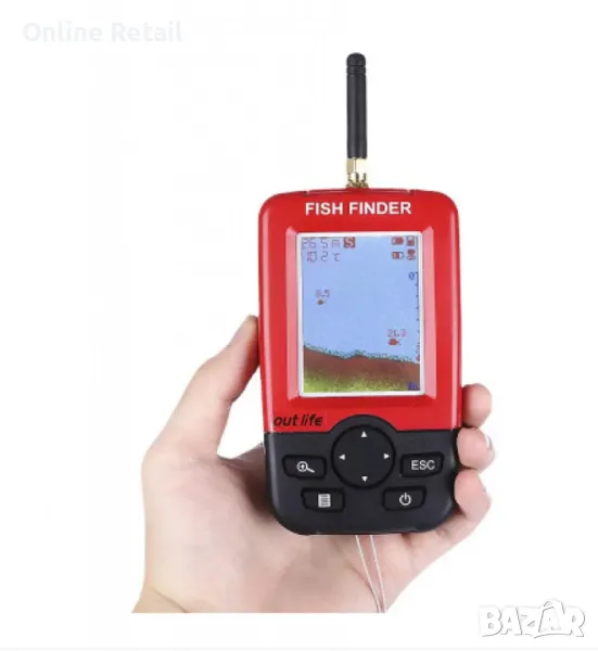 Екран: LCD дисплей, който показва информация за дълбочината на водата, местоположението на рибата и подводната структура;