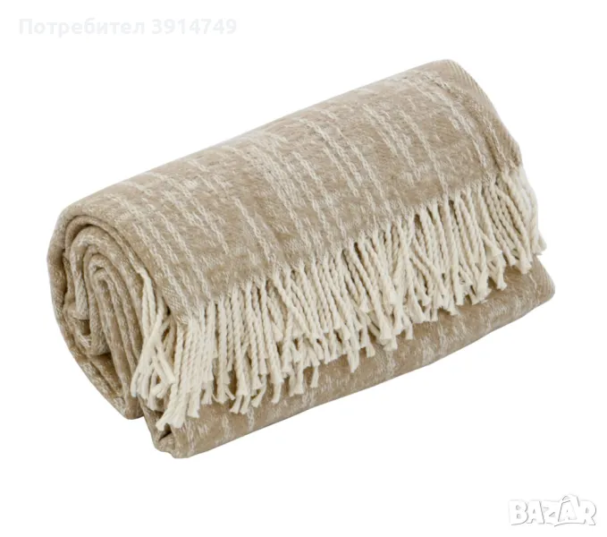 Висококачествена двулицева плетка. Одеялото е меко, плътно и топло. 25% памук и 75% полиестер. С реснички. В бежово и кремаво. Размерът е 130 см х 170 см. Произведено в Испания.