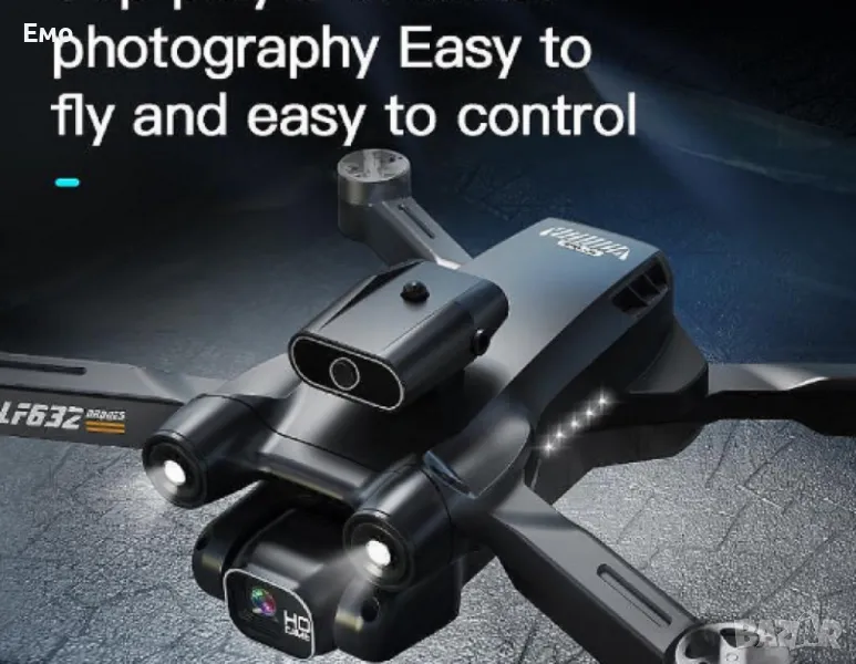 Тип продукт : Професионален дрон;LF632 Професионален дрон с 8K HD камера, 2 батерии и Dual камери е предназначен за висококачествени въздушни снимки и видео. Този дрон разполага с 8K HD предна камера за изключителни детайли и ясни кадри, както и втора камера за различни ъгли на заснемане;Основни характеристики:Камери: 8K HD предна камера + втора камера за допълнителна перспектива;Батерии: 2 литиево-йонни батерии с дълго време на полет (до 30 минути всяка);Функции: Въздушни снимки и видео, режим "следване", автоматично връщане, 360-градусови снимки;Полетна стабилизация: 6-осов жироскоп за стабилни кадри;Обхват на полета: До 1 км;GPS система: Прецизно местоположение и управление на полета;Гаранция 12 месеца.
