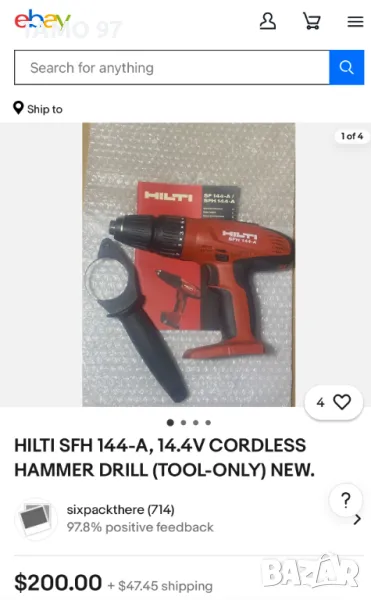 В eBay само един винтоверт е: 200 долара (357лв) Марка и модел: Hilti SFH 144-A