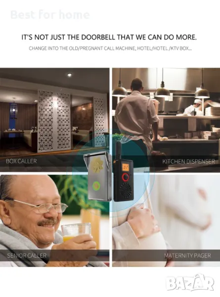 Представяме ви уникална комбинация от звънец с огромен обхват от 5 км и два мобилни приемника- радиостанции.