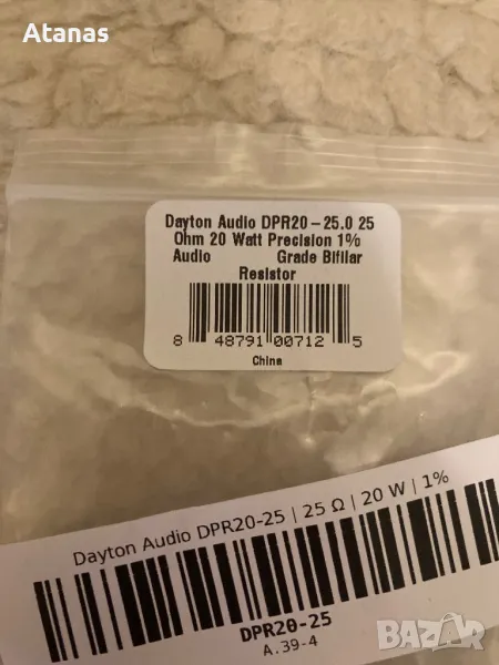 2 x Dayton Audio резистори 25 Ohms, 20 W, 1%, специални за аудиоприложение.