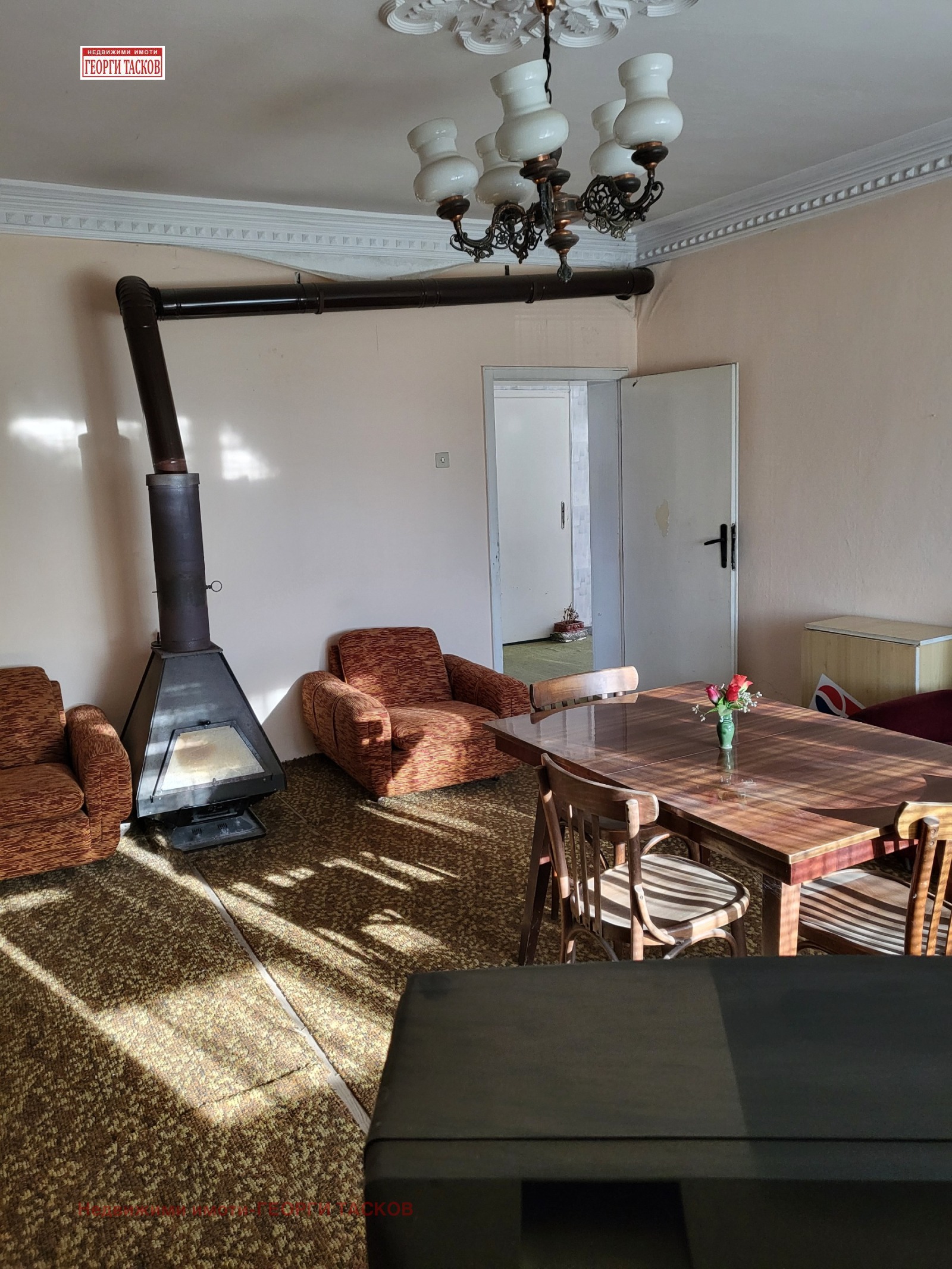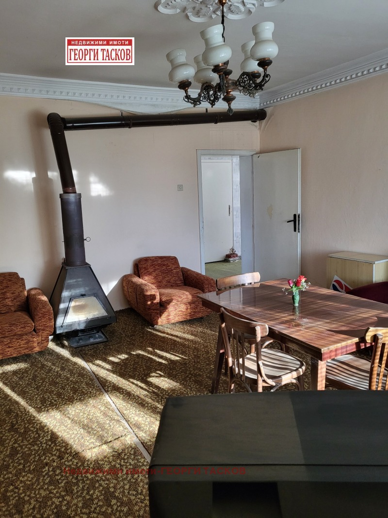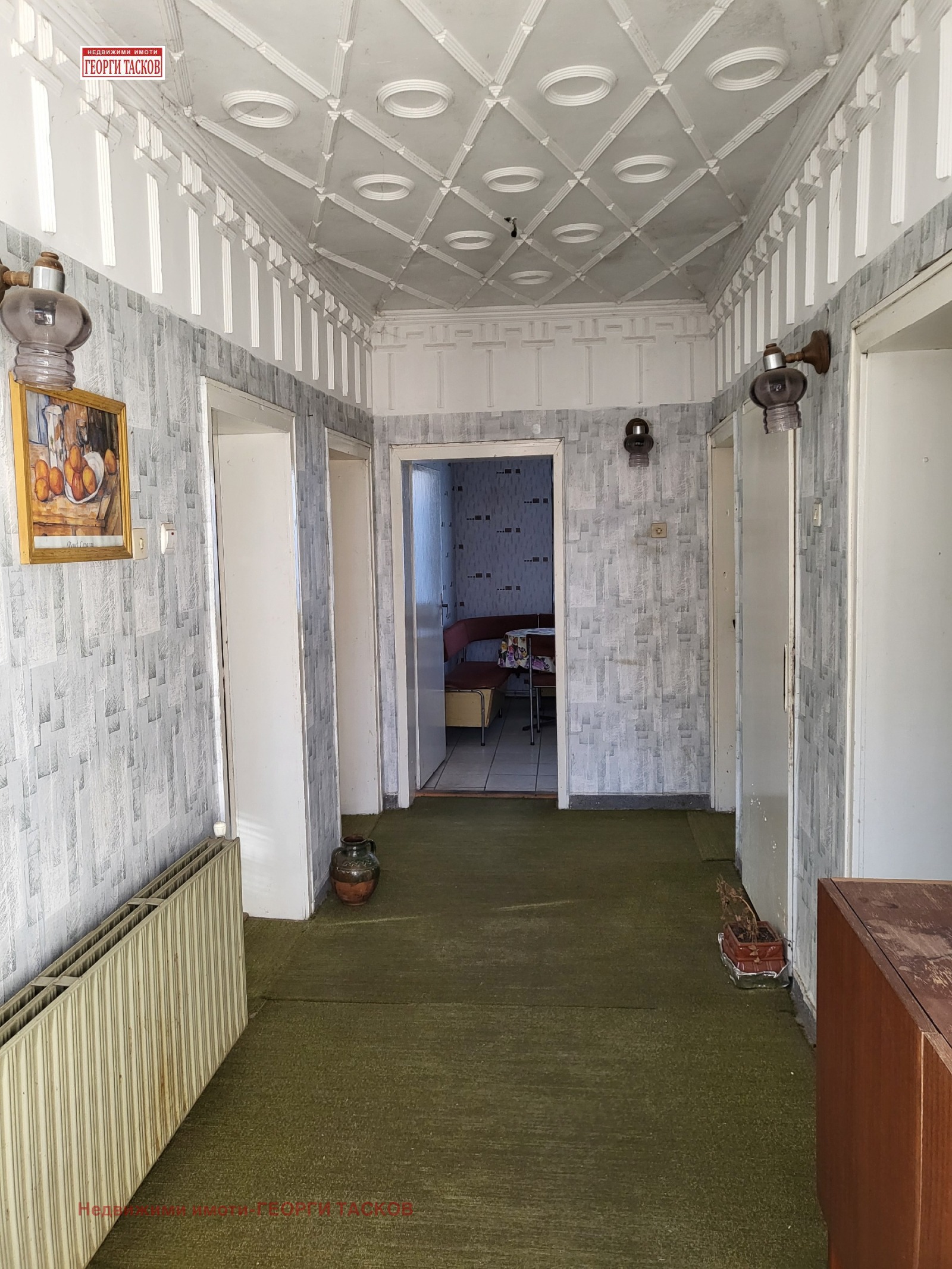 Продава се къща на плоча от 114 кв.м. състояща се от хол , голяма кухня , две спални ,баня и тоалетна с вътрешни стълби към втория етаж с две стаи .Има втора постройка от 62 кв.м. -две стаи със санитарен възел. Гараж от 37 кв.м. Двор от 850 кв.м.
