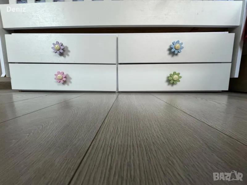 За гр.Хасково безплатна доставка Нивата на кошарата са общо 3 на брой, като всяко от тях се използва при достигане на определена възрастова категория на детето. Най-горната позиция се използва за новородено, средната за периода до около 9-ти месец и в момента, в който детето започне да се изправя, кошарата се фиксира в най-долната си позиция, като това е с цел да осигурим неговата безопасност. Кошарата разполага с функция за люлеене. По-желание функцията люлка може да се фиксира с помощта на болтове от двете страни. Четирите чекмеджета, с които разполагате, ще Ви дадат възможност за удобна подредба на всички необходими артикули за вашето дете.