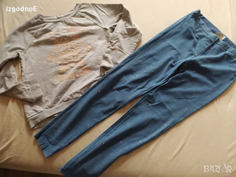 134/140 Клин дънки с камъчета и блузка HM → Обява 47553399