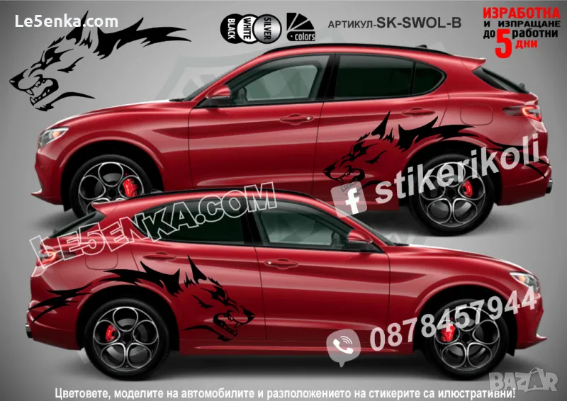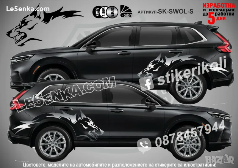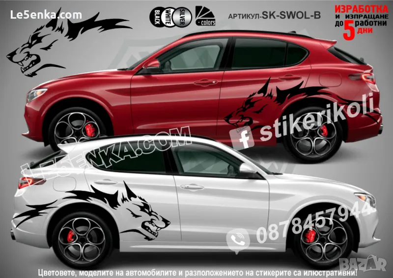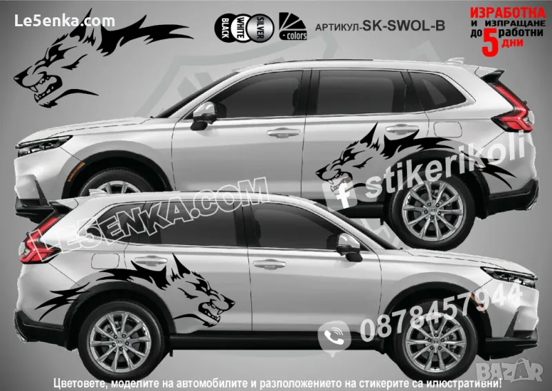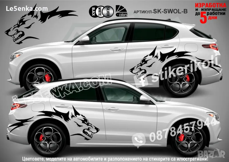 Ако искате да поръчате пишете под обявата или на Вайбър. Не звънете след 18 часа или през почивните дни. Стикерите се изработват от качествено автомобилно фолио, като се подготвят за монтаж с транспортно фолио. Два броя – за лявата и дясната част на автомобила с дължина до 130 см. и височина 50 см. всеки един от тях. Изработваме след поръчка в рамките на до пет работни дни в зависимост от натовареноста . Избор между бяло, черно и сребърно фолио.
