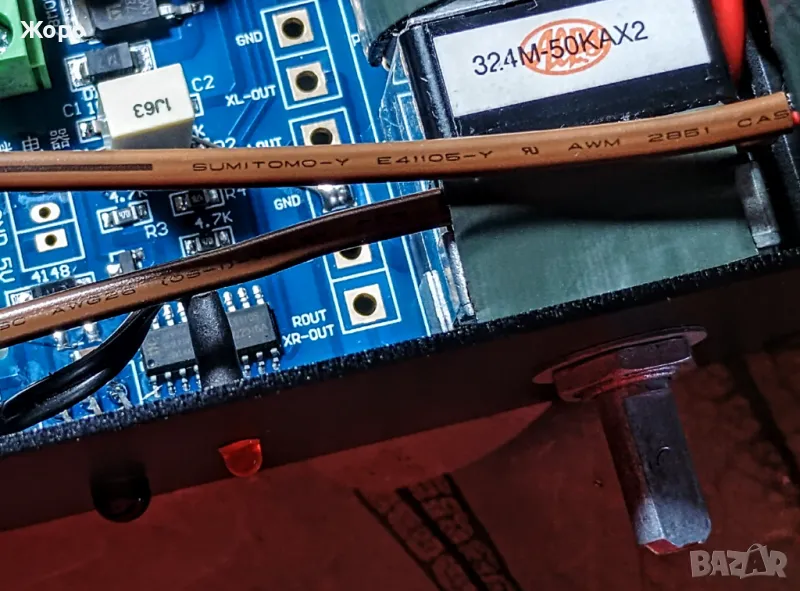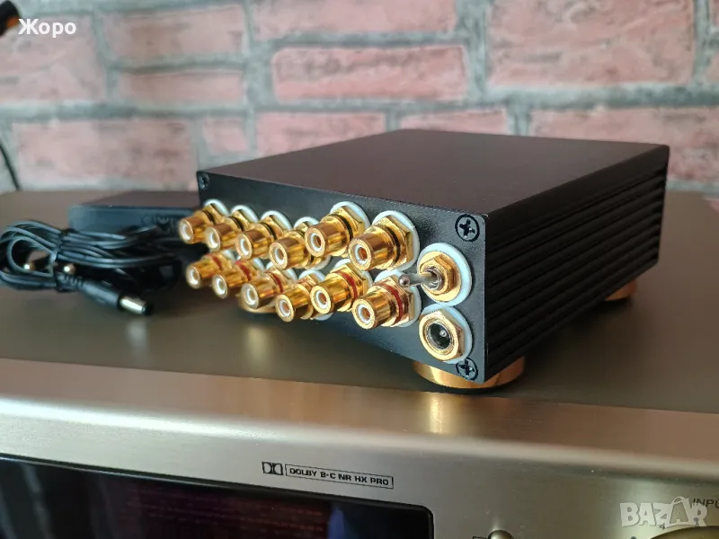 предусилвател, изработен с подбрани компоненти, изцяло метален (монолитен лят алуминий - кабинет и копчета).