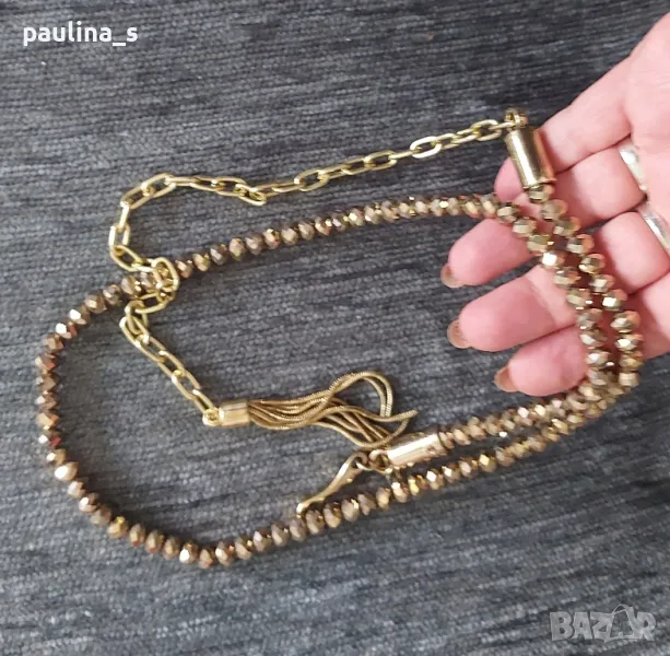 6️⃣. Декориращ колан със златисти камъни, като нов, закопчаването е с кукичка / 65см + удължител 26см - цена 29,99лв / 15 евро.