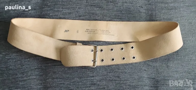 4️⃣. Естествен велур, марков бежов колан, не е нов, без дефекти е, голям размер / дължина 112см / ширина 6см, по етикет размер 100 - цена 19,99лв / 10 евро.