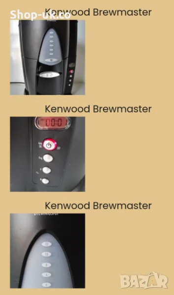 Kenwood Brewmaster CM550 и CM560 са филтърни кафе машина с часовник и автоматичен таймер, така че може да се използва като будилник, като приготвен чай! Brewmaster има огромен капацитет от 12 чаши от 1,8 литра, така че дори може да се използва вместо урна за чай. Той разполага с постоянен филтър, за поддържане на топлината (изключва се след 2 часа), дозатор за натискане (без тенджера – просто натиснете с чашата) или разбира се часовник и таймер с