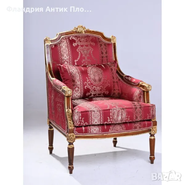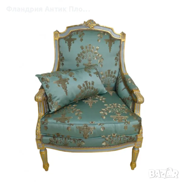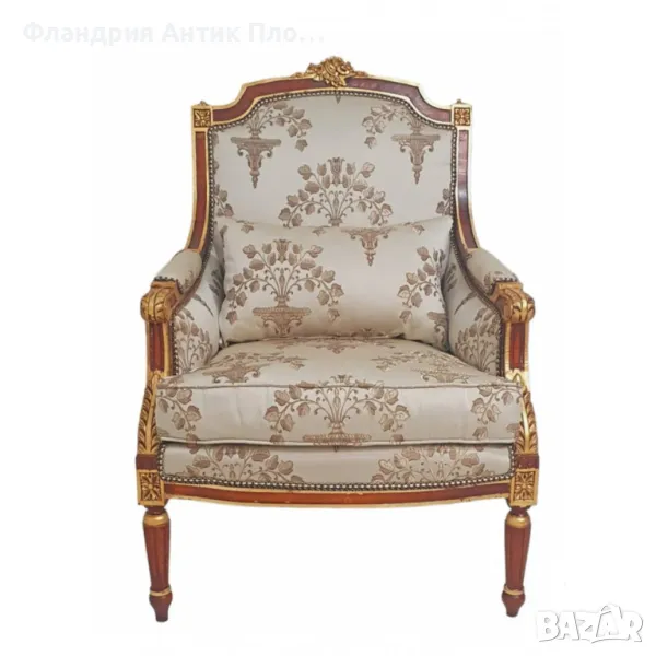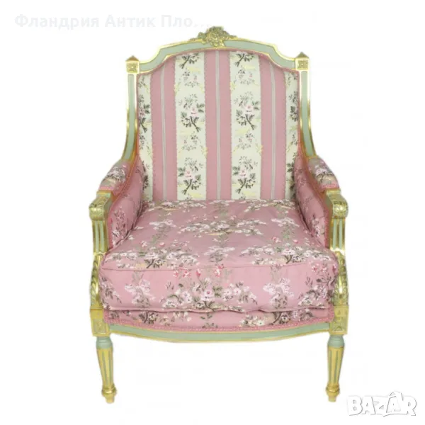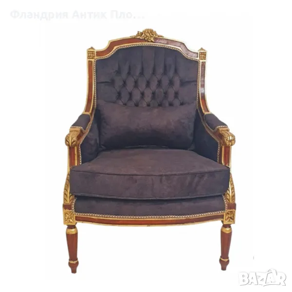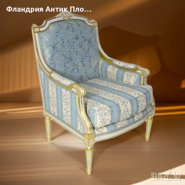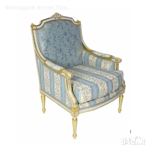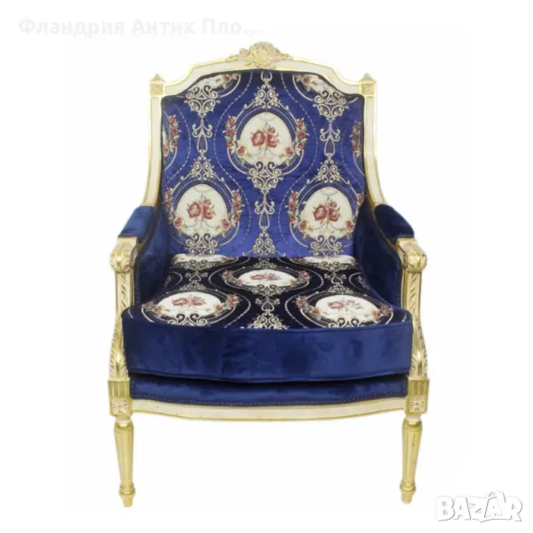 Представяме Ви кресло в класически френски стил "Луи XVI". Изработено от масивно дърво с фина резба, акцентирана със златен варак, то излъчва аристократична елегантност. Тапицерията може да изберете от снимките. Това кресло е идеално допълнение за всеки изискан интериор.