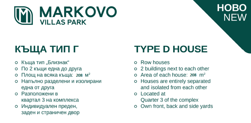 За повече информация и огледи посетете сайта на комплекса http://www.markovovillas.bg или се свържете с нас тел. 0700 2 0000 / 0883 299 229.