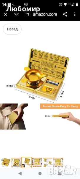 Високопрецизна милиграмова везна, 50g/0,1g мини цифрова джобна грамова везна, mg везна за претегляне на прахове, бижута, лекарства, скъпоценни камъни, презареждане, златна везна.Високо прецизно претегляне: GRAM PRES High Precision Milligram Scale има вградени високо прецизни сензори, които претеглят точно малки предмети като бижута, злато, прах, лекарства, билки, монети и скъпоценни камъни. Има максимален капацитет от 50 g и отчита теглото на стъпки от 0 g.Множество мерни единици: С мини грамовата везна GRAM PRES можете лесно да превключвате между 6 режима - g, oz, ct, ozt, dwt и gn - с помощта на бутона "M". LCD дисплей със задно осветяване показва ясни числа в несветла среда. Везната има и функция за автоматично изключване, която пести енергия след 180 секунди.Преносим и удобен: Мини грамовата везна GRAM PRES е проектирана с малък размер, подобен на този на мобилен телефон, и се предлага със защитно покритие от ABS за поставката за теглене. Включва набор от удобни инструменти: пинсети, лъжица, теглилка и батерии, което улеснява вземането на малки предмети и претеглянето на прахове в движение.Мултифункционална везна: Тази везна за презареждане се предлага с функция за тара, която ви помага лесно да получите нетното тегло на претегления артикул в контейнера. Той също така идва с 50 g калибрираща тежест, която ви позволява лесно да калибрирате отново везната, без да купувате допълнителни тежести.