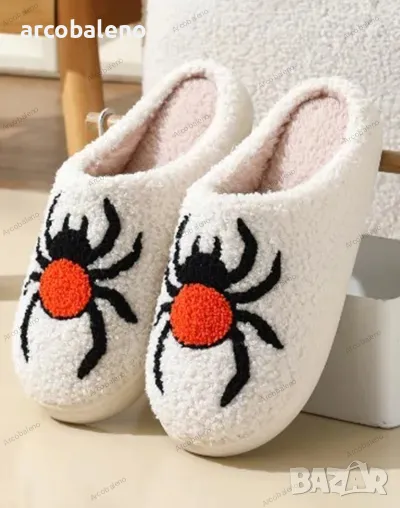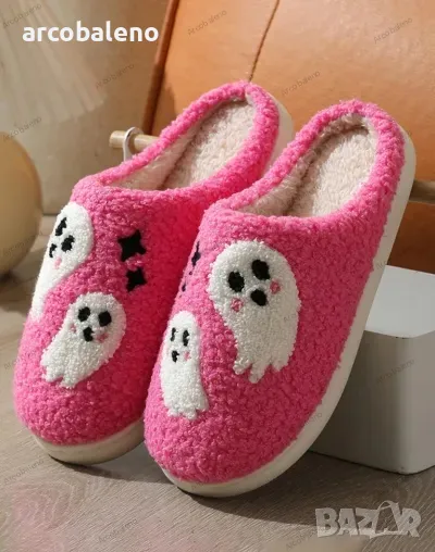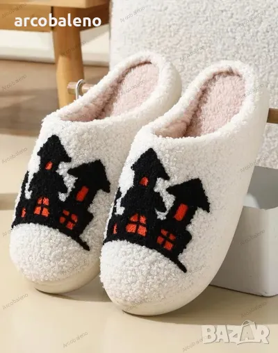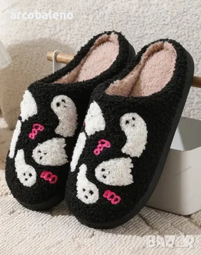 Унисекс домашни плюшени топли чехли с шарка на Хелоуин Ghost House