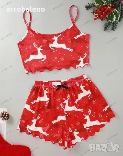 Коледна дамска ежедневна пижама от две части, 5цвята