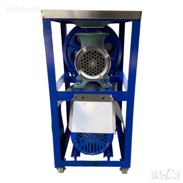 Професионална чугунена месомелачка Румънска с електромотор с двоен ремък и плот от неръждавейка