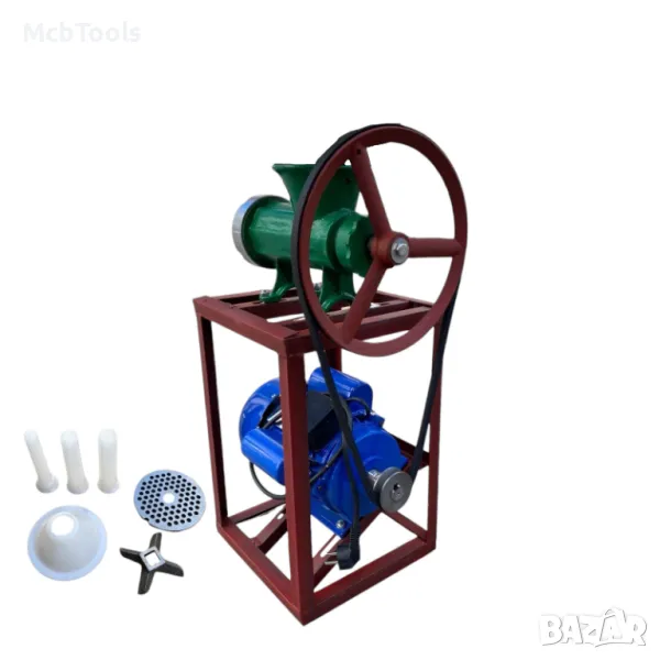 Чугунена Румънска месомелачка 32номер в комплект електромотор с медни намотки , стойка и метална фуния