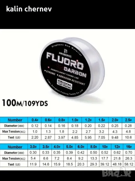 флорокарбон 100м. На фирма proberos много здрав и устойчив различни размери