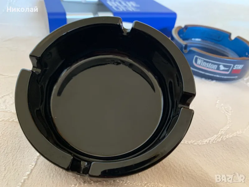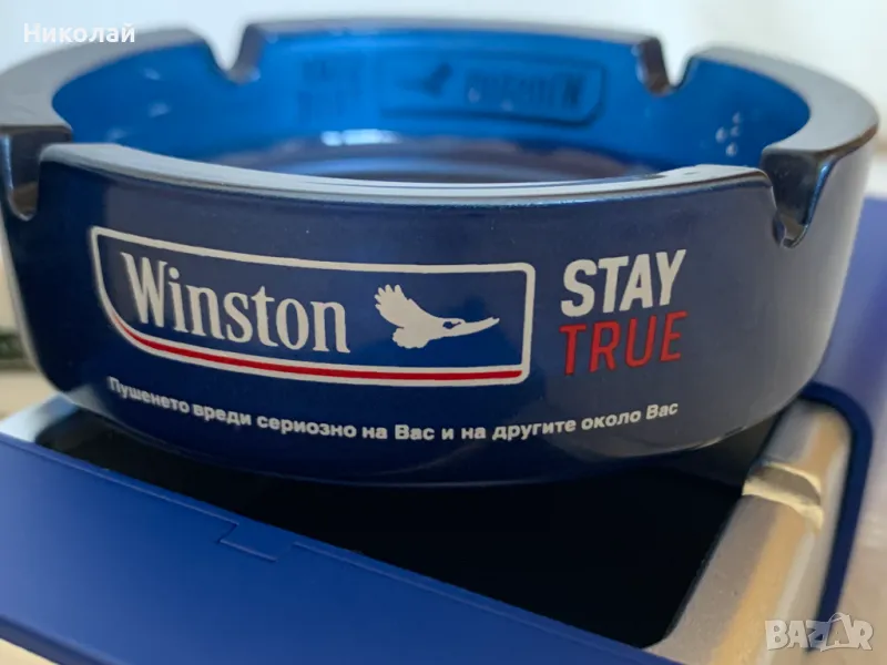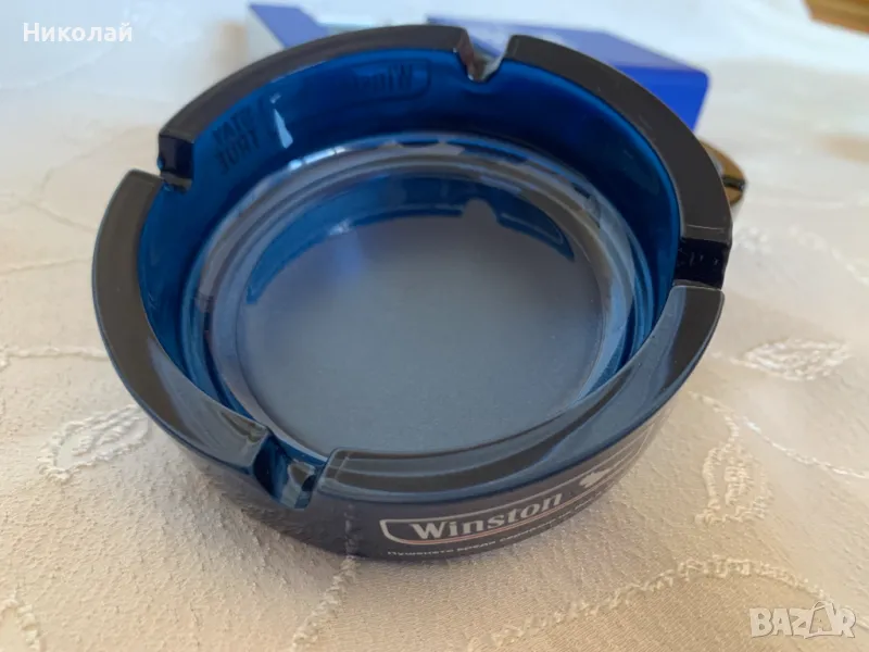 3. Пепелник Winston. Син, стъклен. Размери 10.5 х 3.2 см.