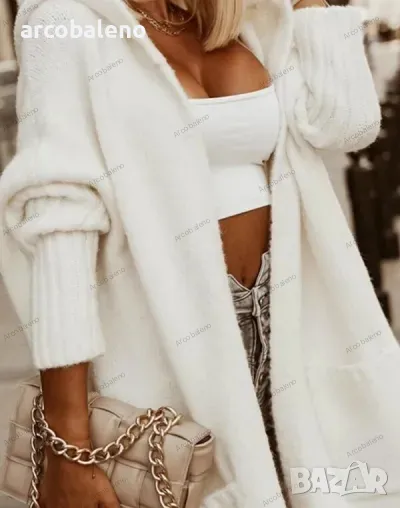 Дамска дълга жилетка с качулка и дълъг ръкав