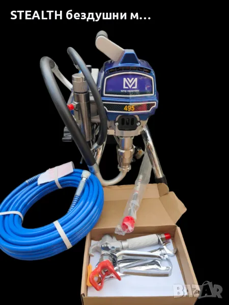 Професионална машина от висок клас за безвъзвъздушно боядисване STEALTH 495 PC дизайн. Направена от висококачествени части с цел по дълга експлоатация, защото избора на машини е голям но качеството малко!!! Характеристики Мотор- 1400W Дебит - 2.4л/Мин Безчетков мотор Смарт контрол Максимална дюза 523 Маркуч за високо налягане 15М(1/4) Дюза 517 Удължител 50см Висок клас пистолет.Машина е с голям клапан обезвъздушаване и пръскане а не стандартен малък с цел по трудно запушване и по дълъг живот.Без завишени литри или параметри Машина е еквивалент на