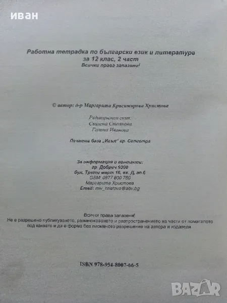 Работна тетрадка Български и Литература 12.клас втора част - 2014г. → Обява 47558374