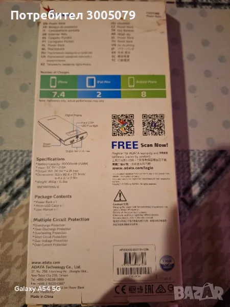 Продавам Батерия ADATA 20000 mah! Батерия е нова!