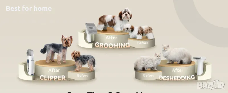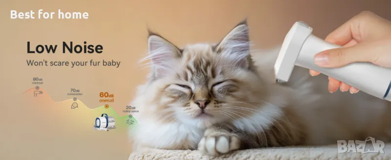 • Уредът характеризира с ниско ниво на шум под 60dB, за да не причинява стрес на вашите домашни любимци. Можете уверено да се грижите за вашия домашен любимец, без да се притеснявате за неговия дискомфорт