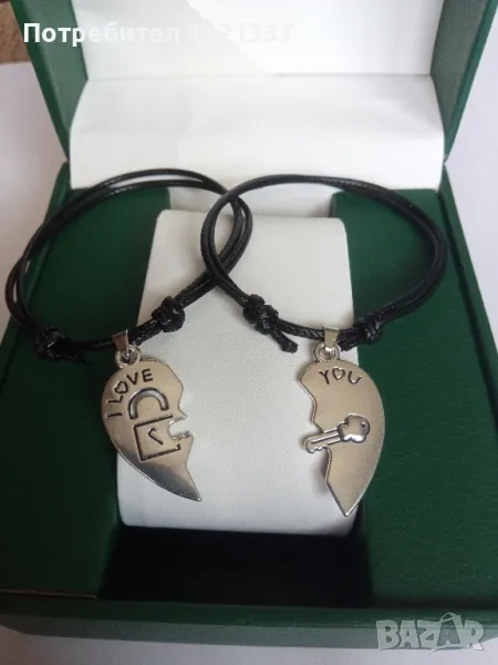 Комплект гривниВключва два броя гривни с регулираща се дължина и висулка с формата на половинка от сърце.