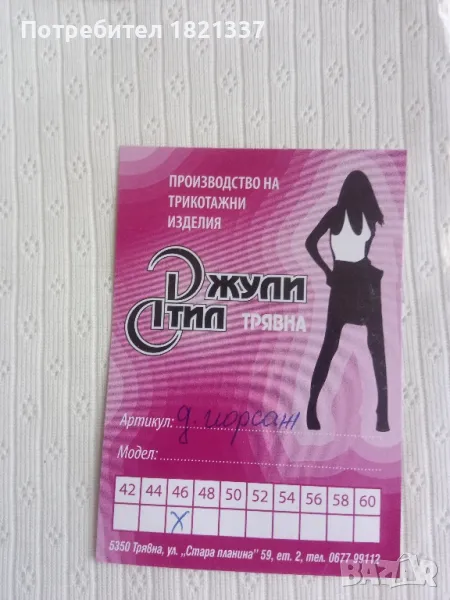 Размер 46. Състав 100% памук. Производител Джули стил, Трявна.