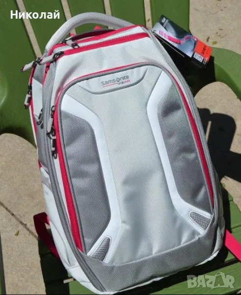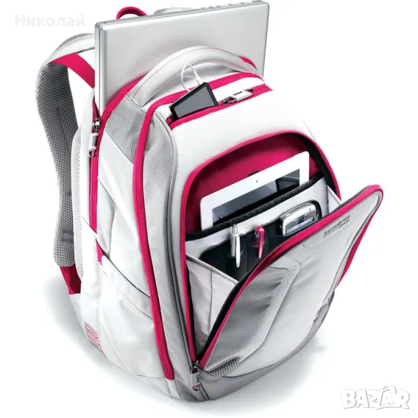 Чантата се носи с подплатени презрамки с неплъзгащи се подложки. Освен това има въртяща се скоба на презрамките за предотвратяване на ненужно усукване. Осигурена е горна дръжка за бързо изваждане от шкафовете, страничната част на бюрото ви или задната седалка на колата ви. Дългите дни на полето или дългите пътувания могат да ви накарат да ожаднеете, така че Samsonite е включил два удобни странични джоба за бутилка вода. Пакетът е подкрепен от тригодишната гаранция на Samsonite.