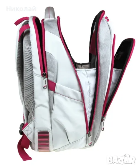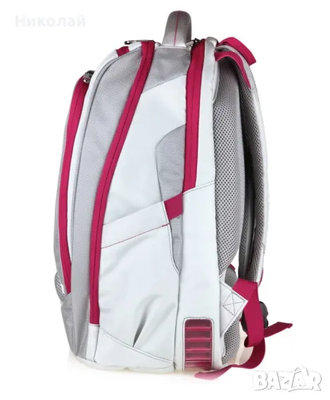 Сребристо/ултра розовата раница Viz Air с 15,6" джоб за лаптоп от Samsonite е изработена от издръжлив найлон 1682 Denier. Тя осигурява безопасен дом за вашия лаптоп, който е омекотен в собственото си задно отделение. За допълнителна защита, Slimbrief съдържа три въздушни брони в долната част на чантата за подобряване на абсорбцията на удар в случай на случаен контакт или падане.