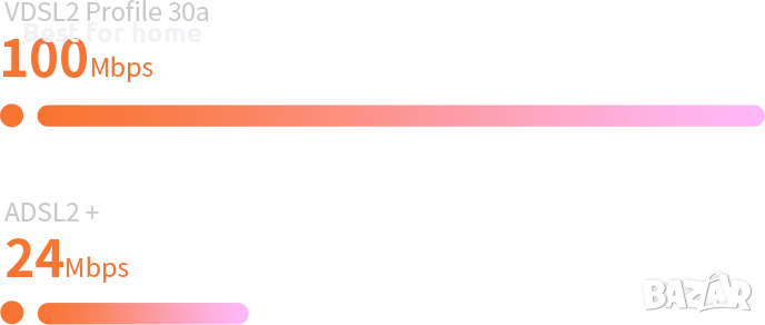 Осигурява до 100Mbps широколентови скорости през VDSL2, бързо отвъд вашето въображение