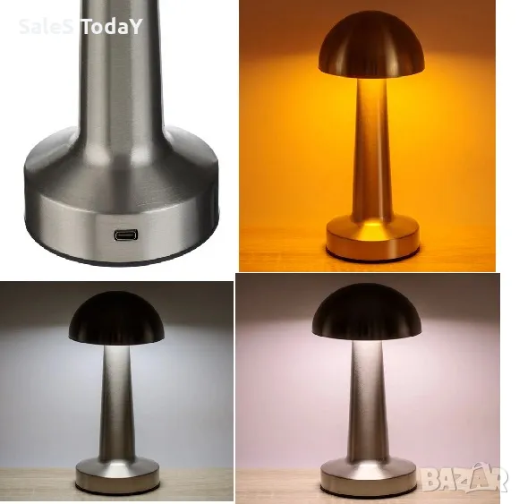 Настолна лампа с 3 различни светлини и сензорна функция чрез докосване на върха. Зарежда се с USB кабел (включен). Има бутон за включване/изключване в долната част. Номинална мощност: 1W.