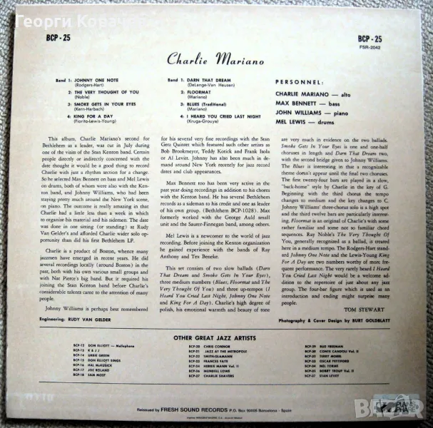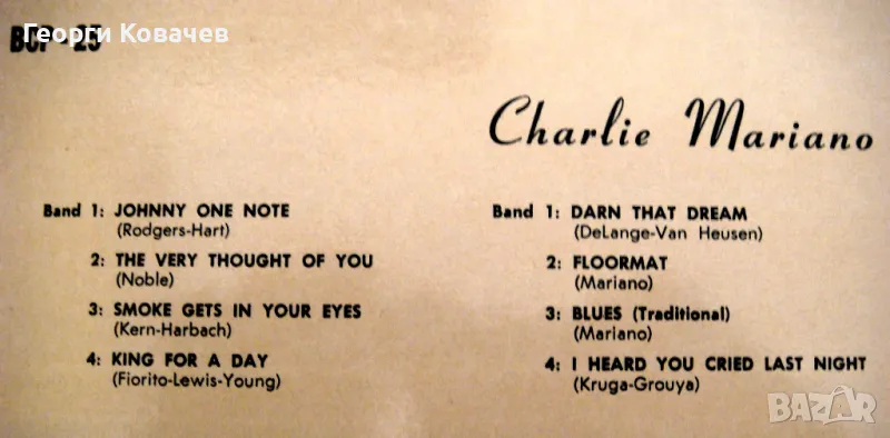 Грамофонна плоча CHARLIE MARIANO квартет → Обява 47563962