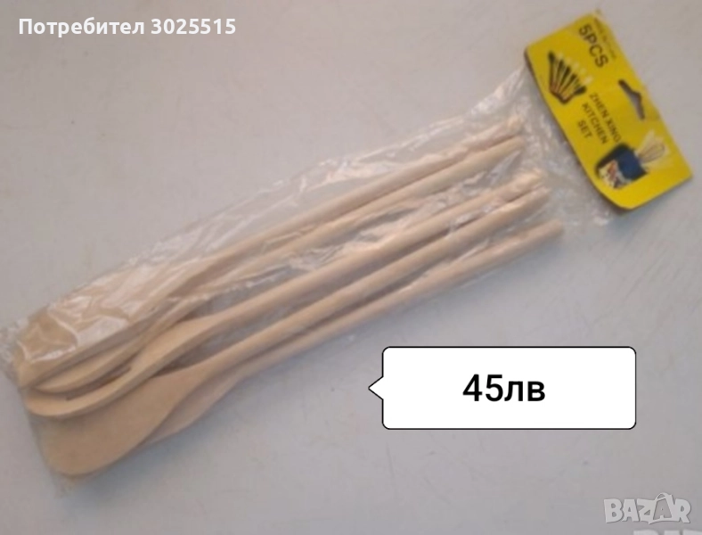 Комплект чисто нови дървени прибори за готвене, за скара, за барбекю.